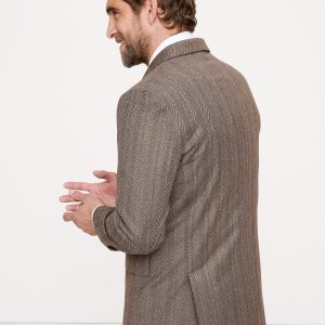 Tailored Slim Fit: Sits at the natural shoulder with an English-style roped shoulder. Fitted through the chest and waist.