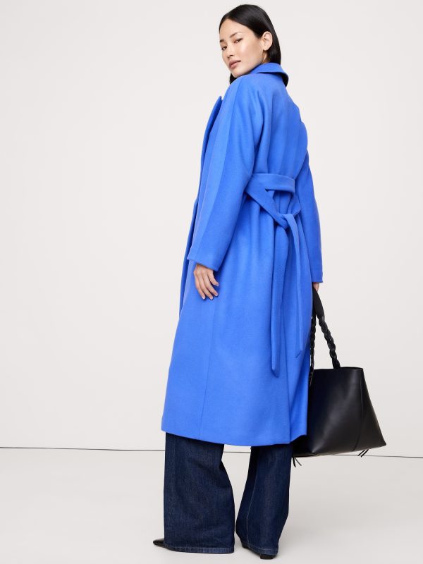 Our version of the season’s wrap coat, cut in an oversized silhouette from a warm Italian fabric woven from virgin wool and cashmere.
