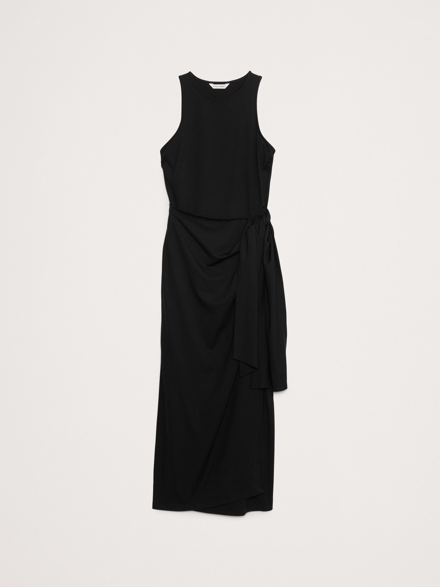 Our take on the timeless wrap dress, this scoop-neck dress is made from a soft, stretchy jersey that ties at the hip.