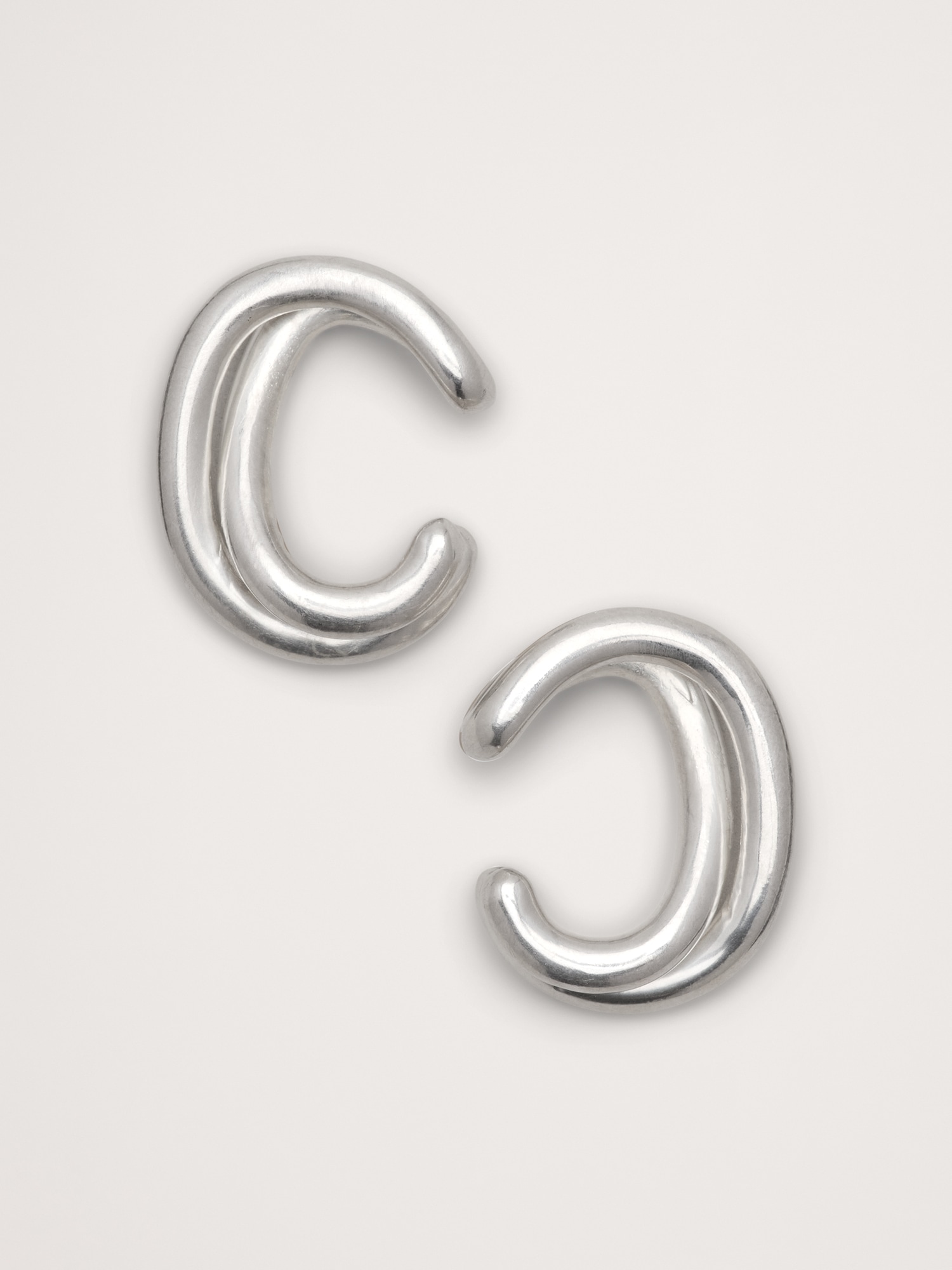 An organic take on an ear cuff designed for pierced and unpierced ears, in 14k-gold or 999-silver plated brass.