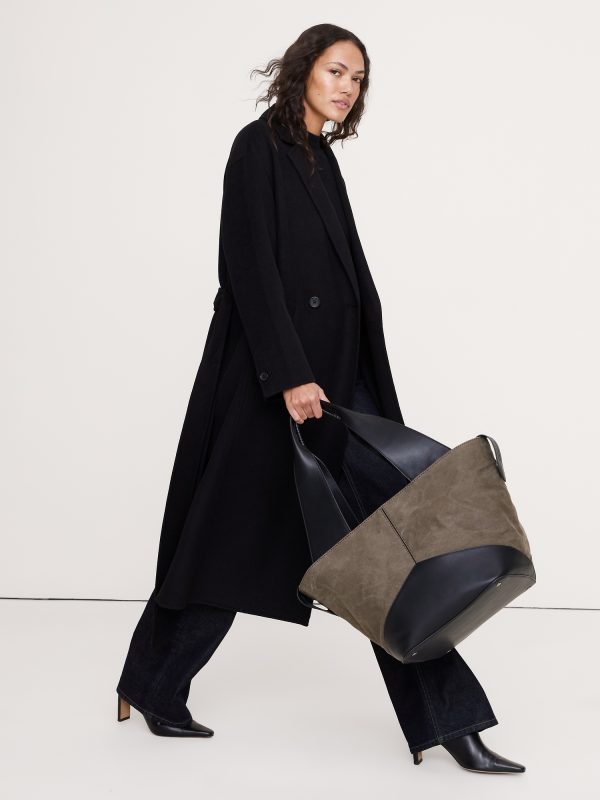 Beautiful materials need no ornamentation. Here, a patchwork tote that shows off your choice of beautiful leathers and suedes from Italy, or sturdy canvas. Plus, it comes with a detachable pouch with card holder to keep smaller items (keys, phones…) together.