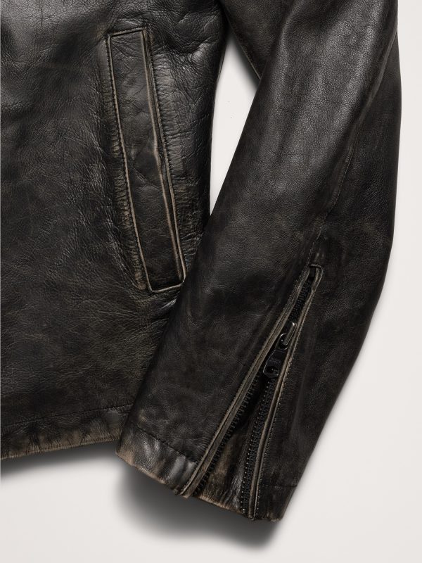 Crafted from supple leather with a silky soft interior lining, this classic moto jacket is finished with all of the traditional features you’d want in a moto jacket, like a banded collar over the neck and grommets under the arms to prevent overheating.