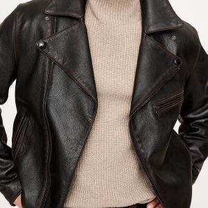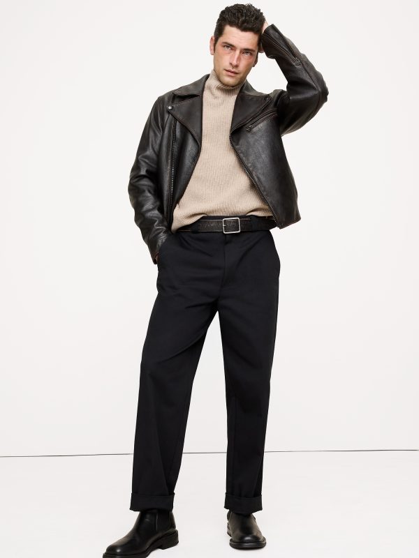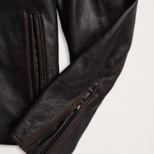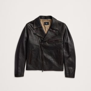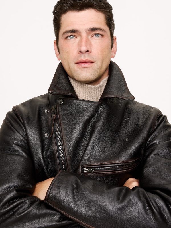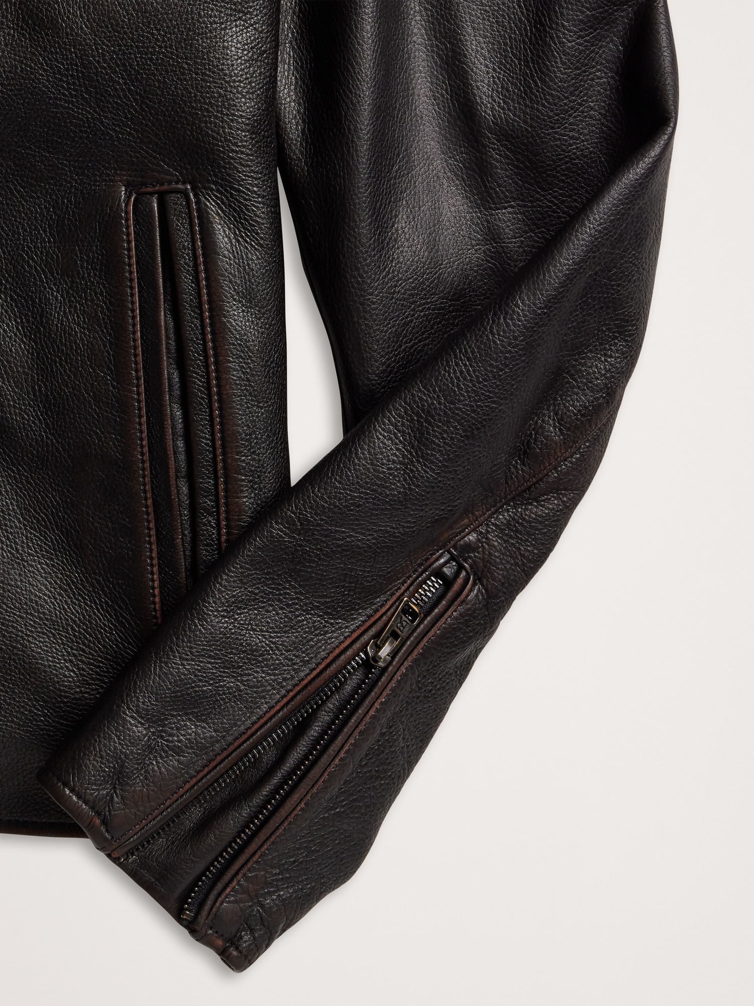 A timeless take on the iconic moto jacket, we kept all the details of the classic—an off-set zip closure, grommets under the arms, zippered cuffs and pockets—adding a Western-style yoke and a ruched accent at the back waist for rugged flair. For a true-to-the-original finish, our designers selected a beautifully burnished leather and an oversized fit.