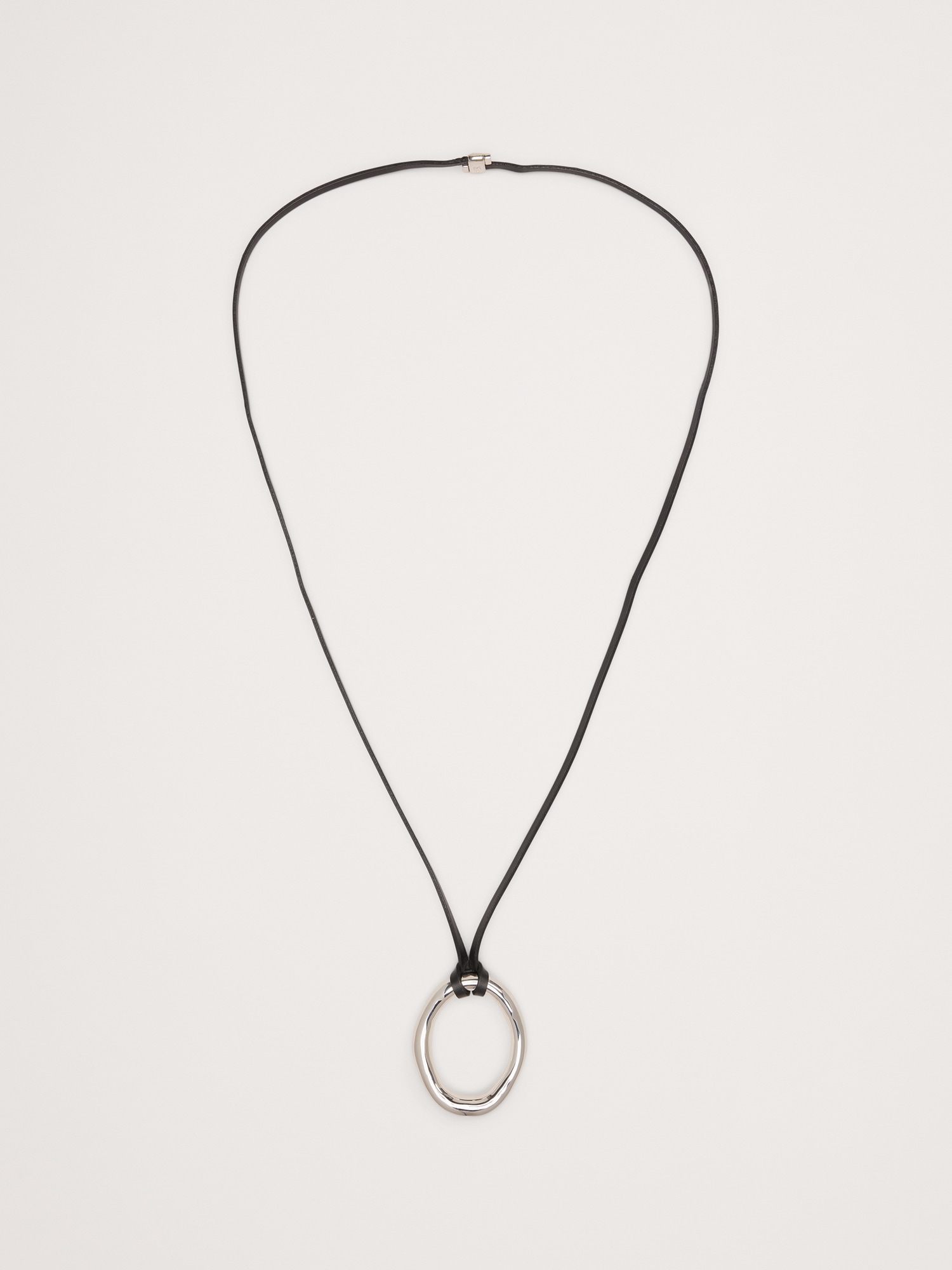 A bold exploration of contrasting textures, this necklace juxtaposes a fluid oval against luxurious leather. Part of our demi-fine jewelry collection, each piece is handcrafted from either 14k-gold or 999-silver plated brass.