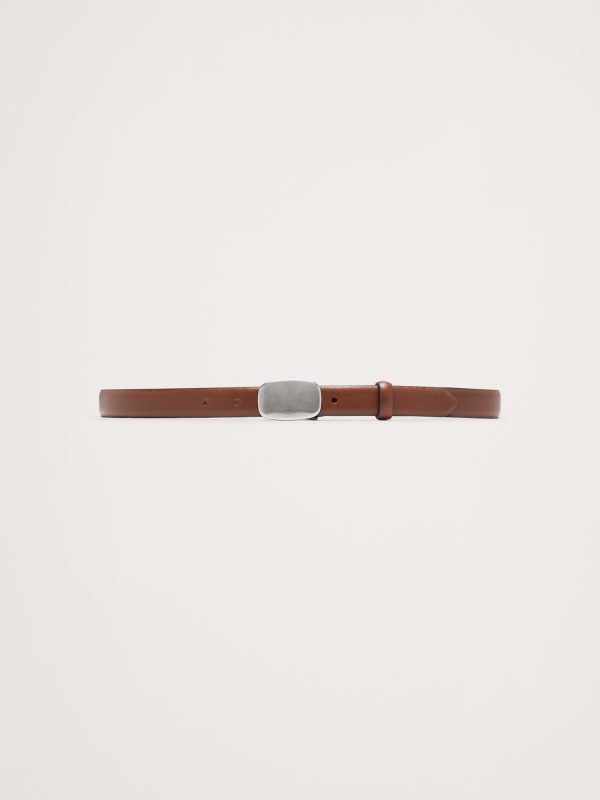 Like a streamlined take on a Western classic, this sturdy leather belt has beautifully burnished edges and a minimalist plaque buckle.