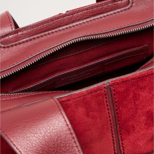 Beautiful materials need no ornamentation. Here, a patchwork tote in a smaller scale that shows off beautiful leathers and suedes from Italy.