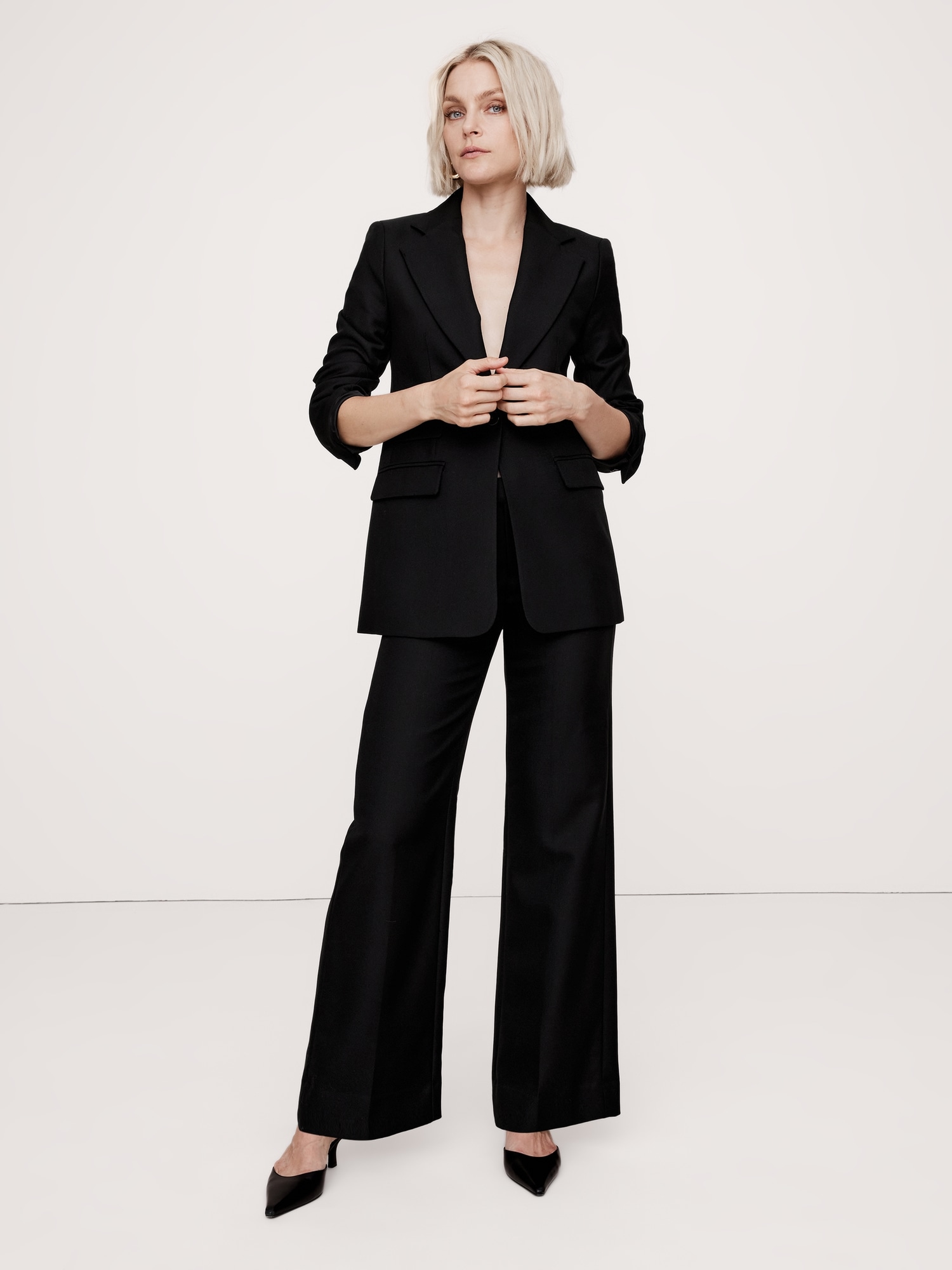 From boardroom to cocktail bar, this wide-leg trouser will have you feeling confident with an exquisitely tailored fit and a not-too-wide leg. Crafted from a timeless all-season wool fabric from Italian mill Marzotto.