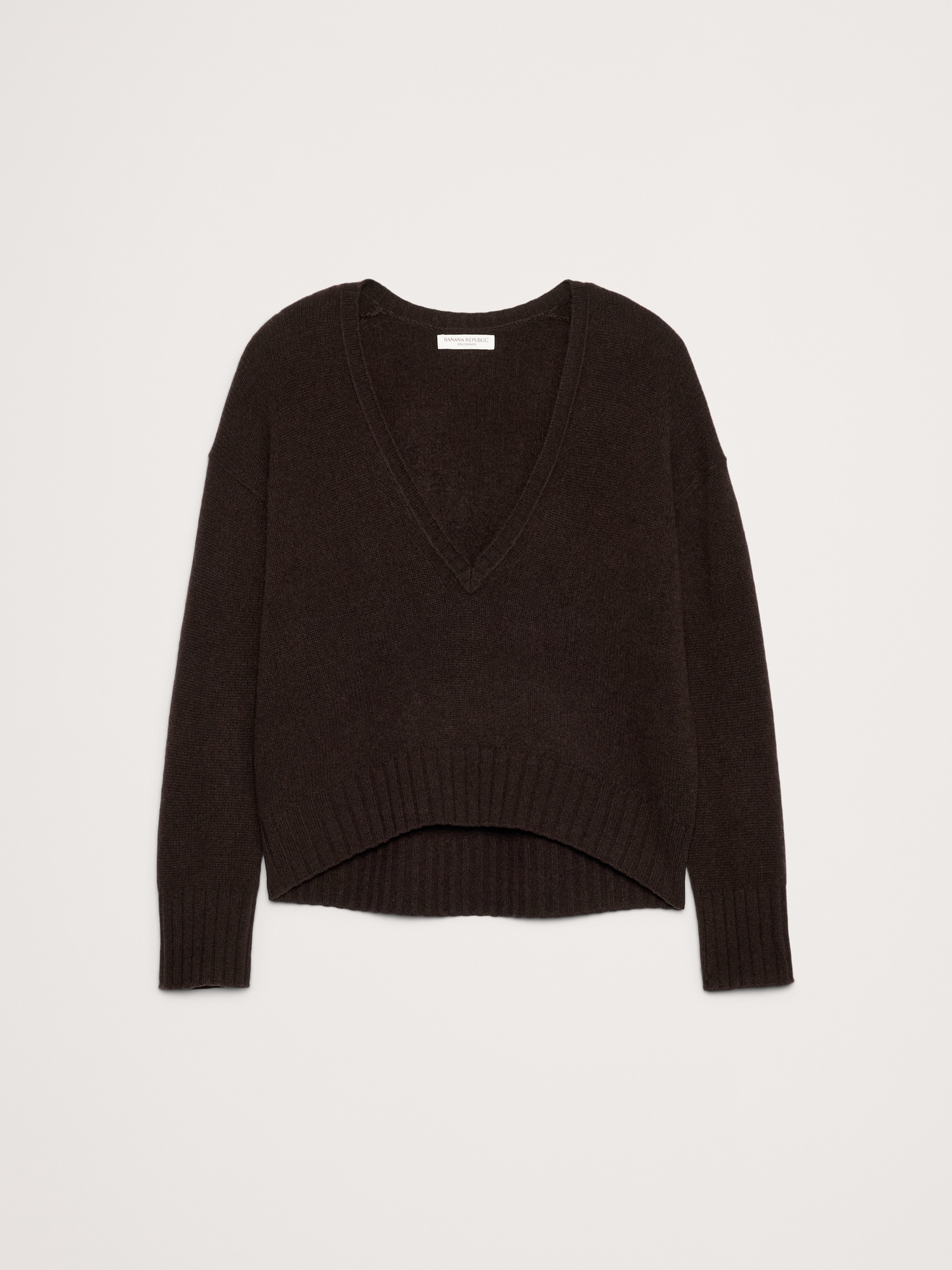 The vibe is lightweight luxury. This updated take on the classic v-neck sweater has not-too-loose fit through the body in our lightweight cashmere yarn—selected for its luxurious softness and all-season weight.