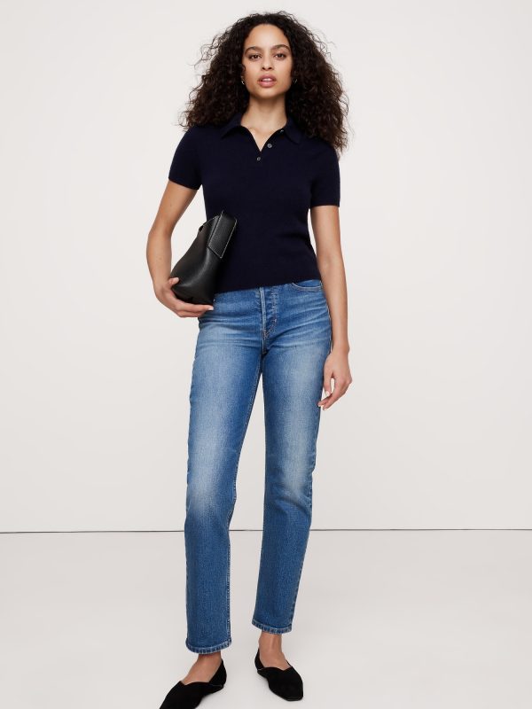 The vibe is lightweight luxury. This classic sweater polo has not-too-tight fit through the body, in our lightweight cashmere yarn.