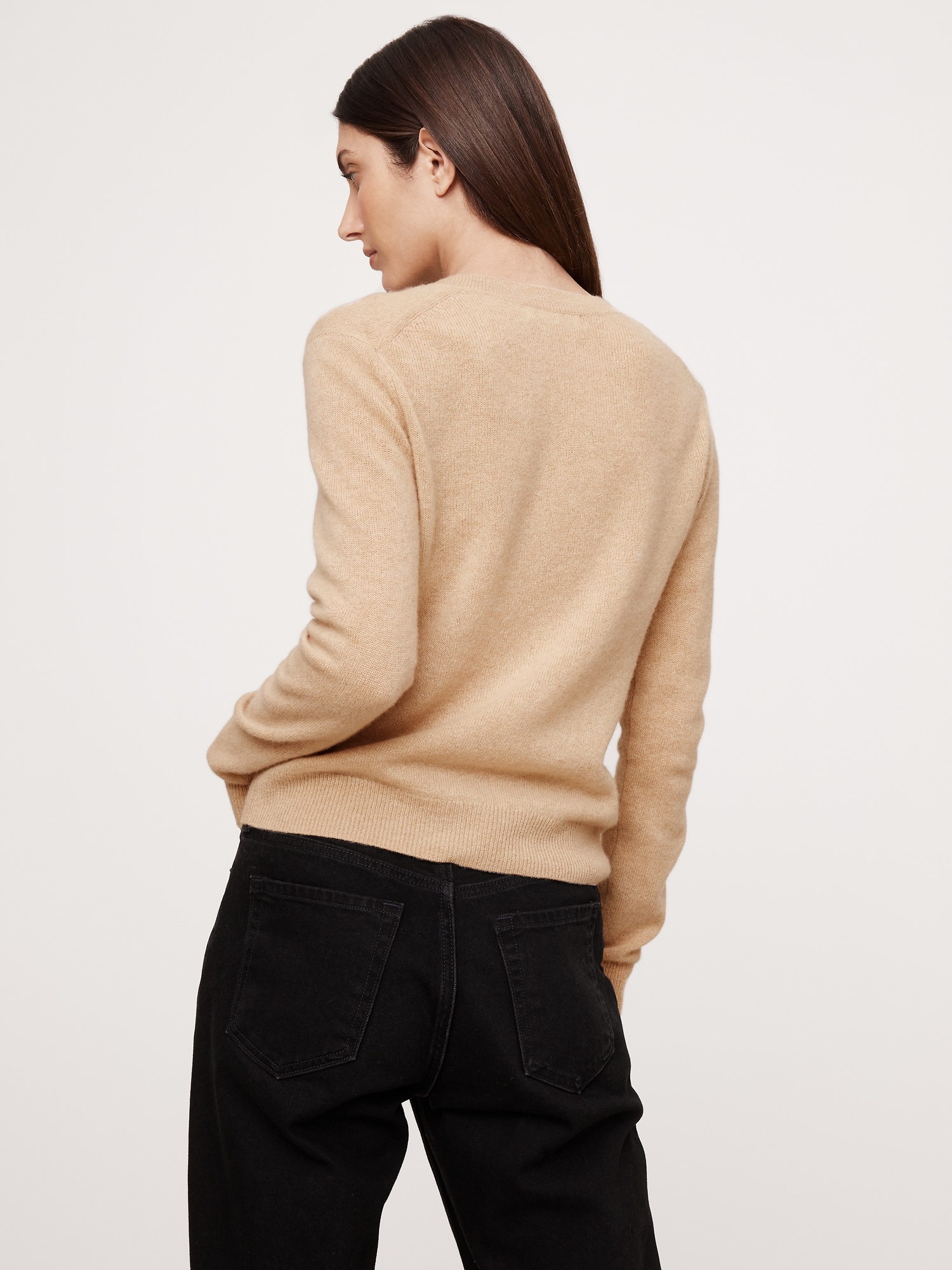 The vibe is lightweight luxury. This updated take on the classic V-neck sweater has not-too-loose fit through the body. We knitted it from our lightweight cashmere yarn, selected for its luxurious softness and all-season weight.