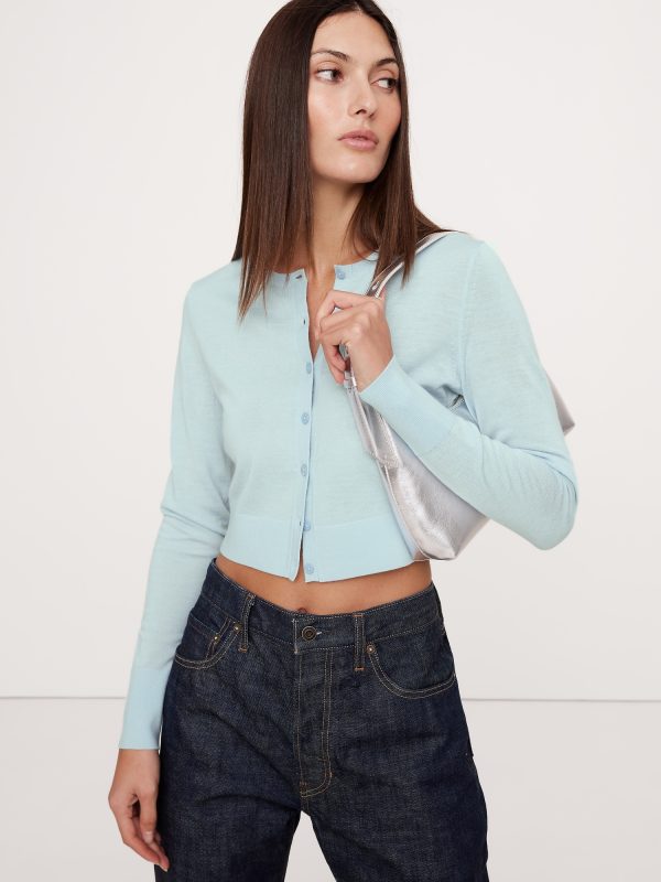 Extra-fine. This cropped cardigan sweater is fully fashioned in our lightweight 100% extra-fine Merino wool, a favorite for it’s softness and warm-weather weight.