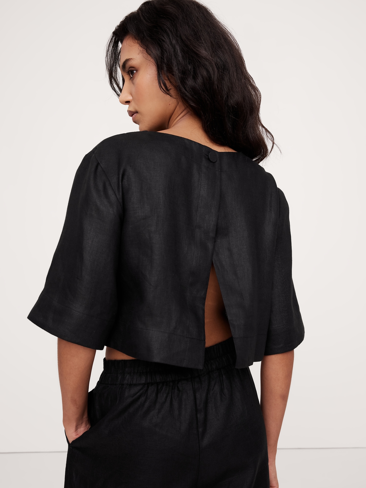 We love an easy top, in 100% certified-European linen. The almost-open back and cropped length of this one means it pairs easily with linen skirts, linen shorts, linen pants…all linen, all day.