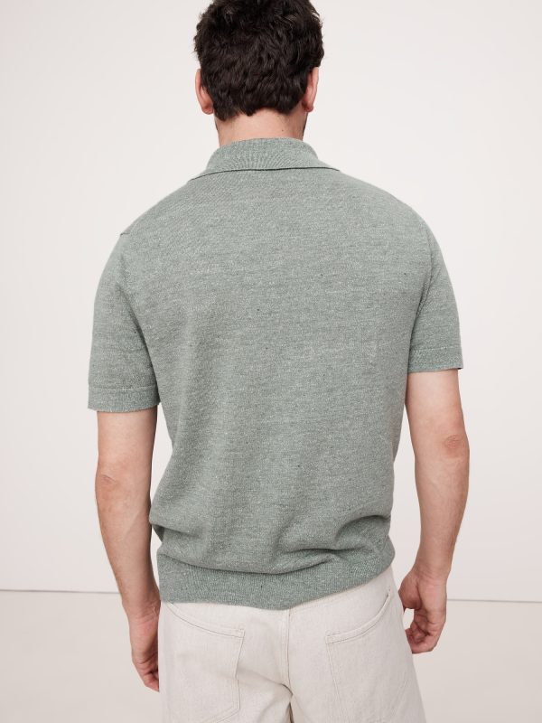 Linen-Cotton Ribbed Sweater Polo