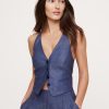 Made from luxurious linen, we cut this vest with a halter neck that ties at back. Style with linen pants and flat sandals, or dress it up with a linen midi skirt and statement jewelry.