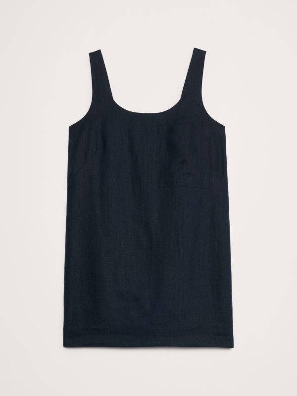 A classic, sleeveless shift dress. We added a chest pocket and cut it in our premium, certified European flax linen—an ideal choice for hot, humid weather.