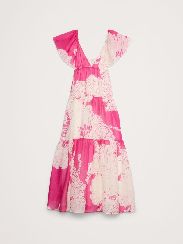 A super-special dress. This tiered maxi dress is all about the details: a flutter sleeve, empire waist, and flowy maxi skirt. Cut from a lightweight blend of linen and silk, it looks (and feels) amazing on.
