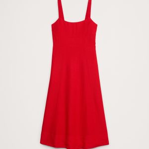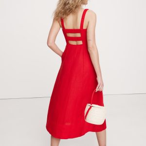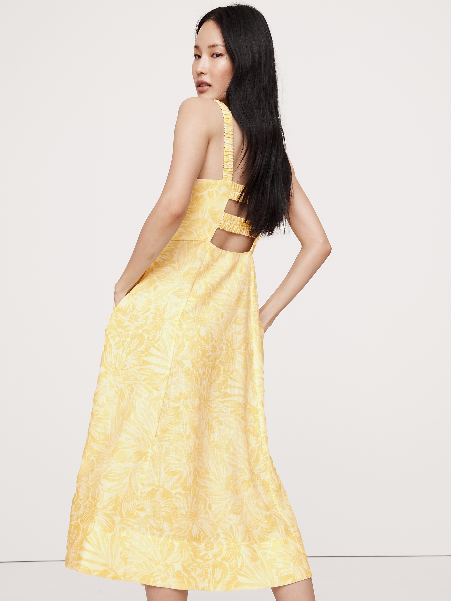Details we love about this dress: the square neckline, the cut-out detail at back, and the 100% certified-European linen fabric.