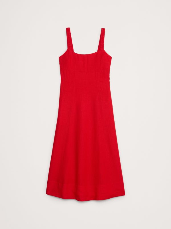Details we love about this dress: the square neckline, the cut-out detail at back, and the 100% certified-European linen fabric.