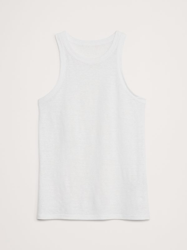 Relax, it’s linen. This tank top has a slim fit (size up if you prefer more relaxed) and is cut from our best-selling linen jersey—an ideal choice in hot, humid weather.