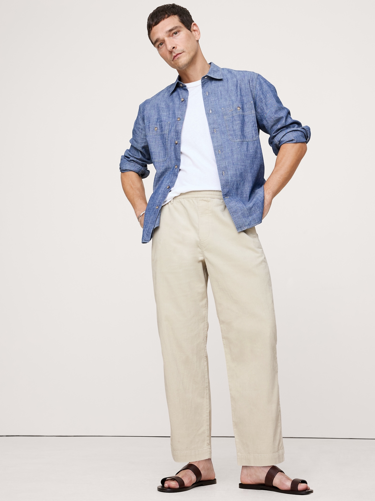 A super-cool pant. We kept the fit baggy, reaching for a lighter 100% cotton corduroy so they’ll carry you through fall and beyond.
