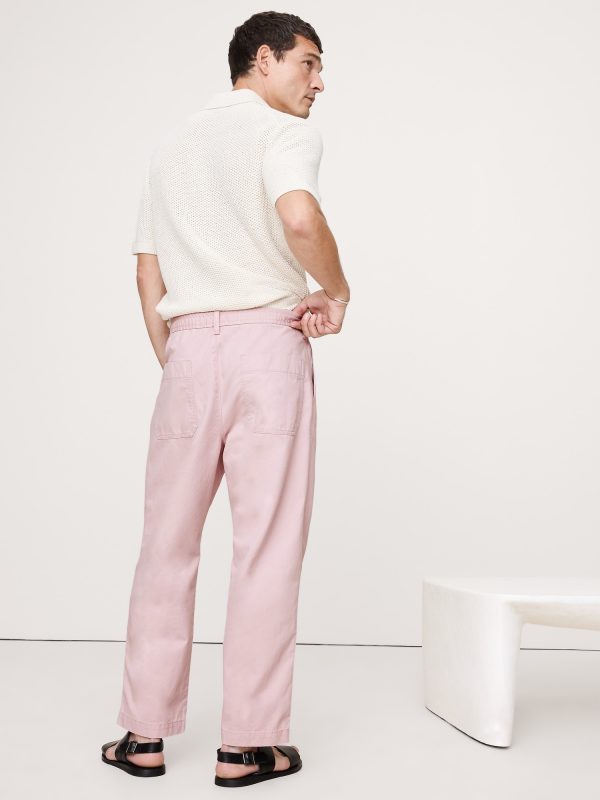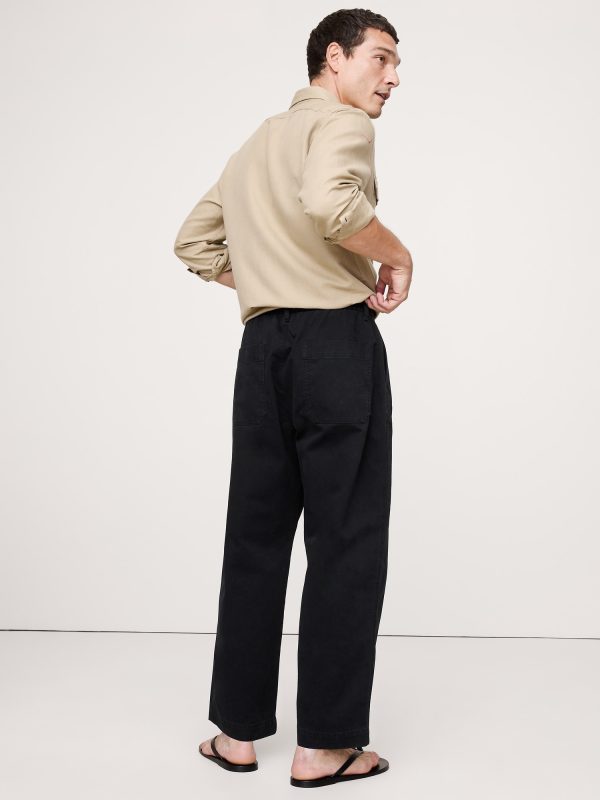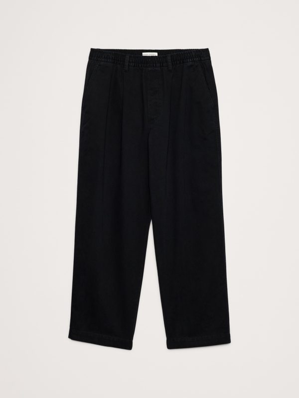 A decidedly cool pull-on pant, cut from a lightweight cotton twill. We kept the fit loose and added a pleated front for a vintage vibe.
