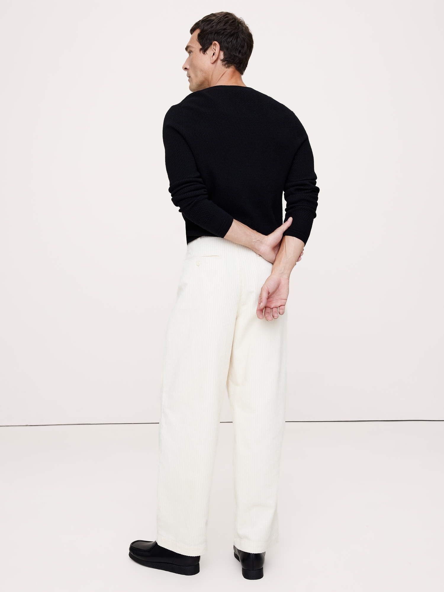 Inspired by a vintage pair of officer’s chinos, this straight-leg pant is cut with a slightly higher rise and an inseam length that stacks nicely at the hem. For fabric, we selected a soft, cotton corduroy with a mix of skinny and wide wales for a retro feel.