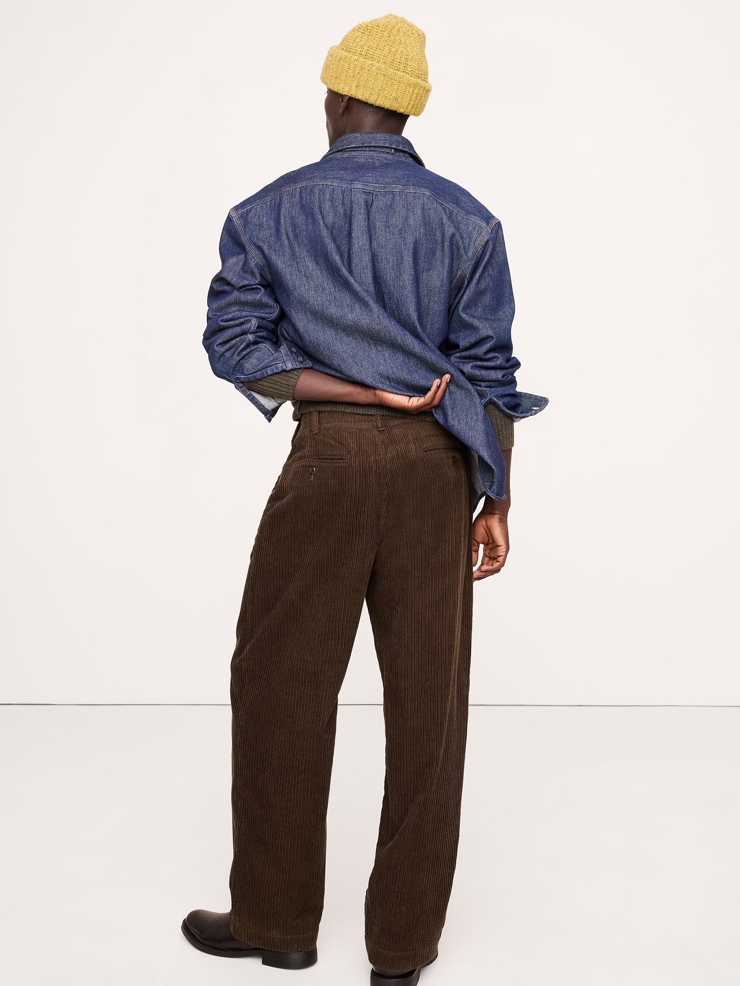 Inspired by a vintage pair of officer’s chinos, this straight-leg pant is cut with a slightly higher rise and an inseam length that stacks nicely at the hem. For fabric, we selected a soft, cotton corduroy with a mix of skinny and wide wales for a retro feel.