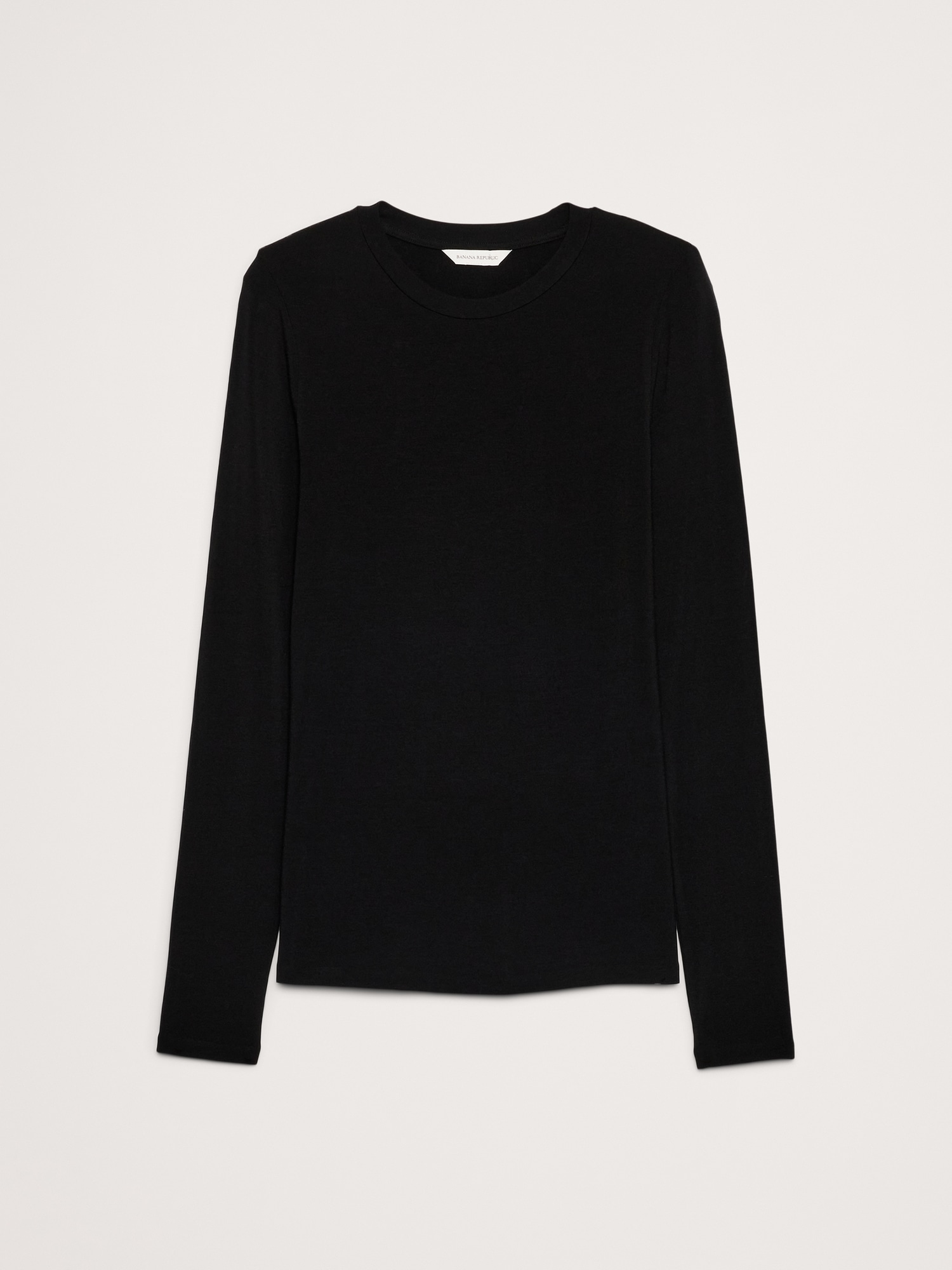 So good, we had to bring it back. This crew-neck top is made from a luxuriously soft wool-blend jersey, in a weight that’s suitable for layering through cooler weather.