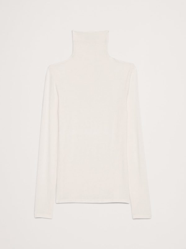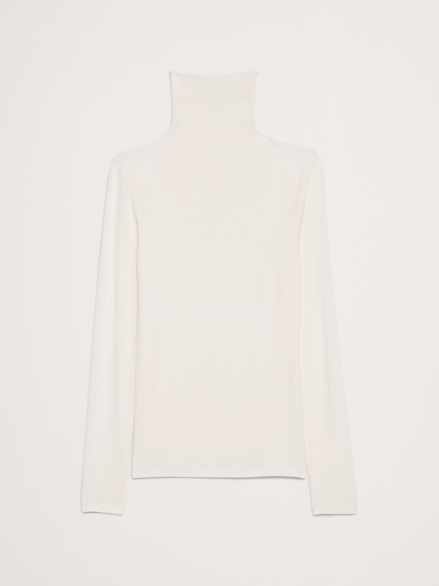 So good, we had to bring it back. This turtleneck top is made from a luxuriously soft wool-blend jersey, in a weight that’s suitable for layering through cooler weather.