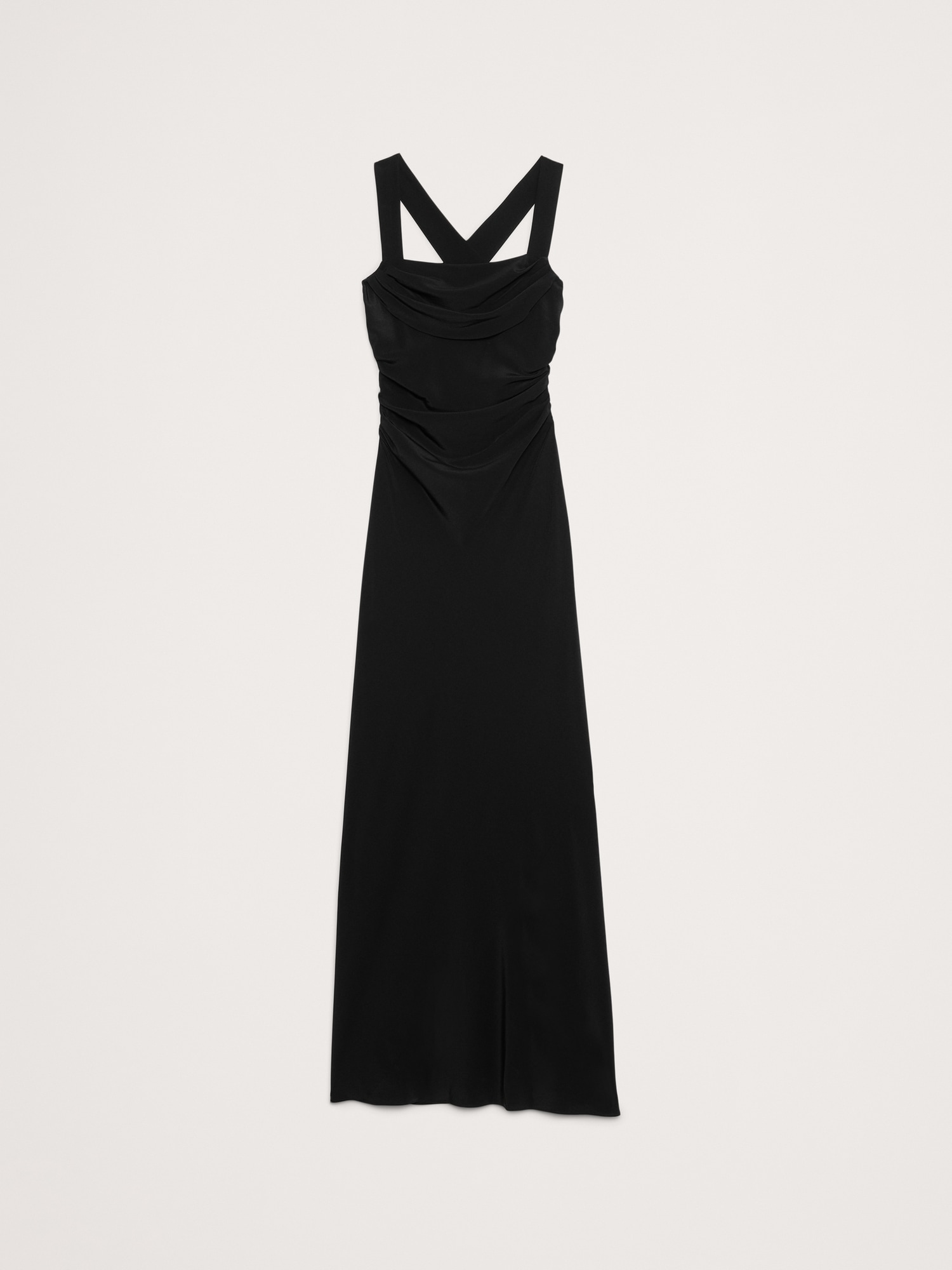 Matte Silk Cowl-Neck Backless Maxi Dress