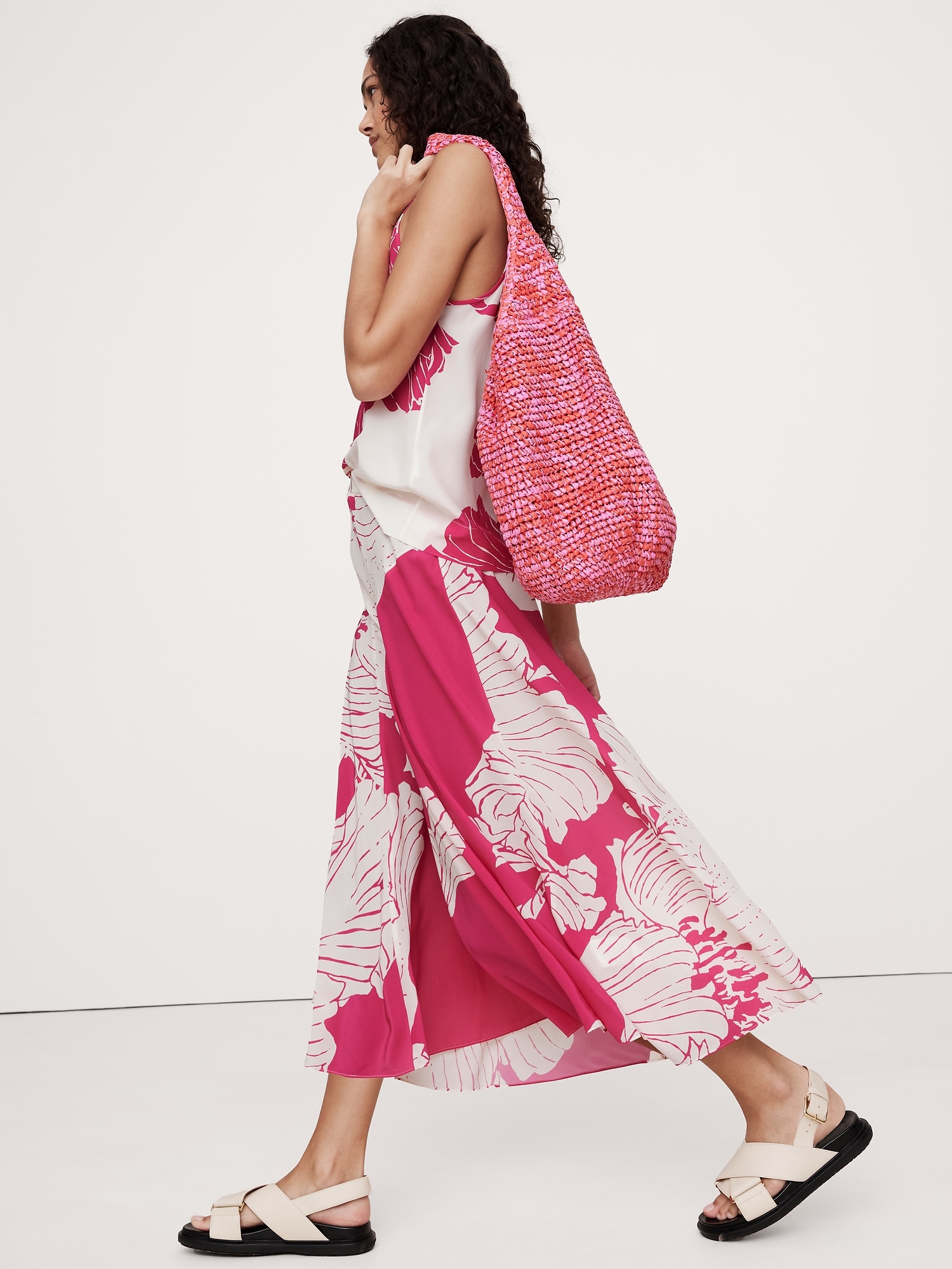 A nod to the 90s slip skirts, this one is cut in luxurious silk de chinewith a paneled construction for an almost art-deco feel. Did we mention, it’s also machine washable?