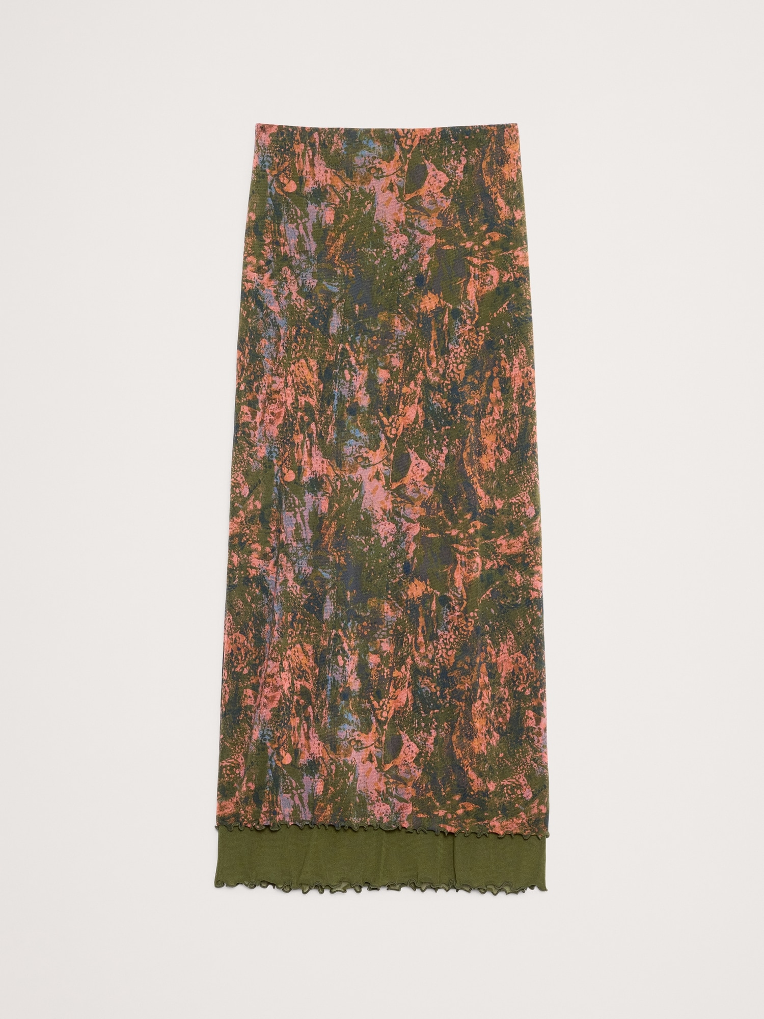 Cut to flatter, this midi skirt has a ruffled, lettuce-hem detail and is made with two layers of our stretch-mesh for a delightful, next-to-skin feel.