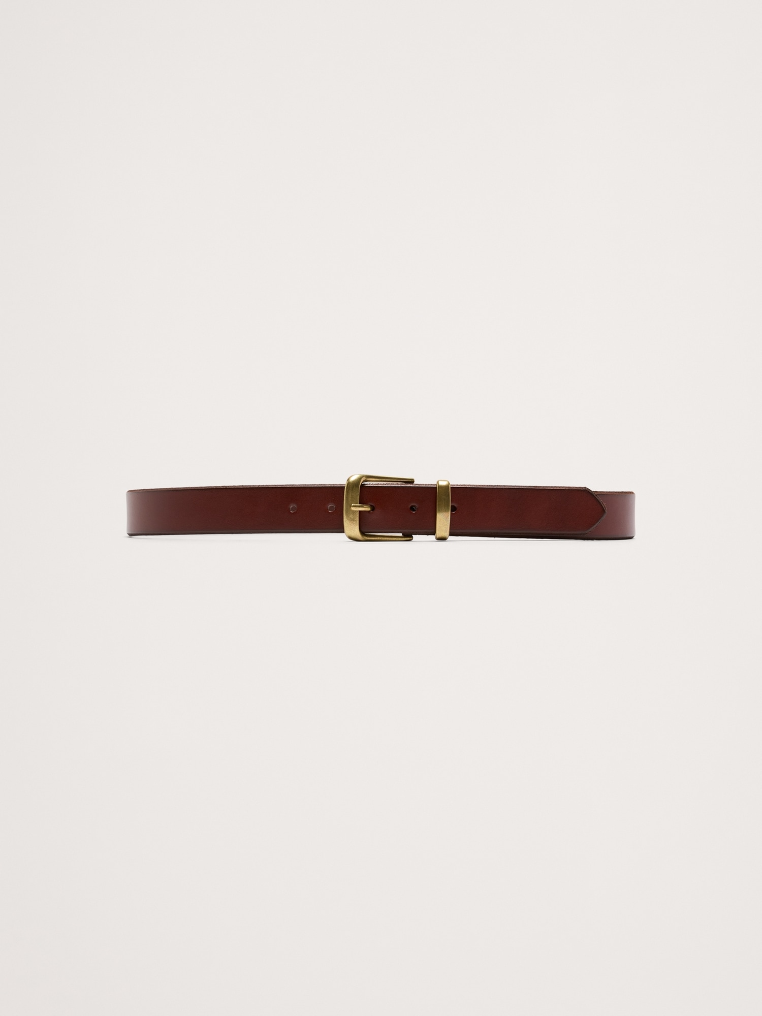 We designed this belt to carry you through the seasons, with a dressed-up appearance and a sturdy leather strap. We added a metal belt buckle loop-keeper for a bit of edge.
