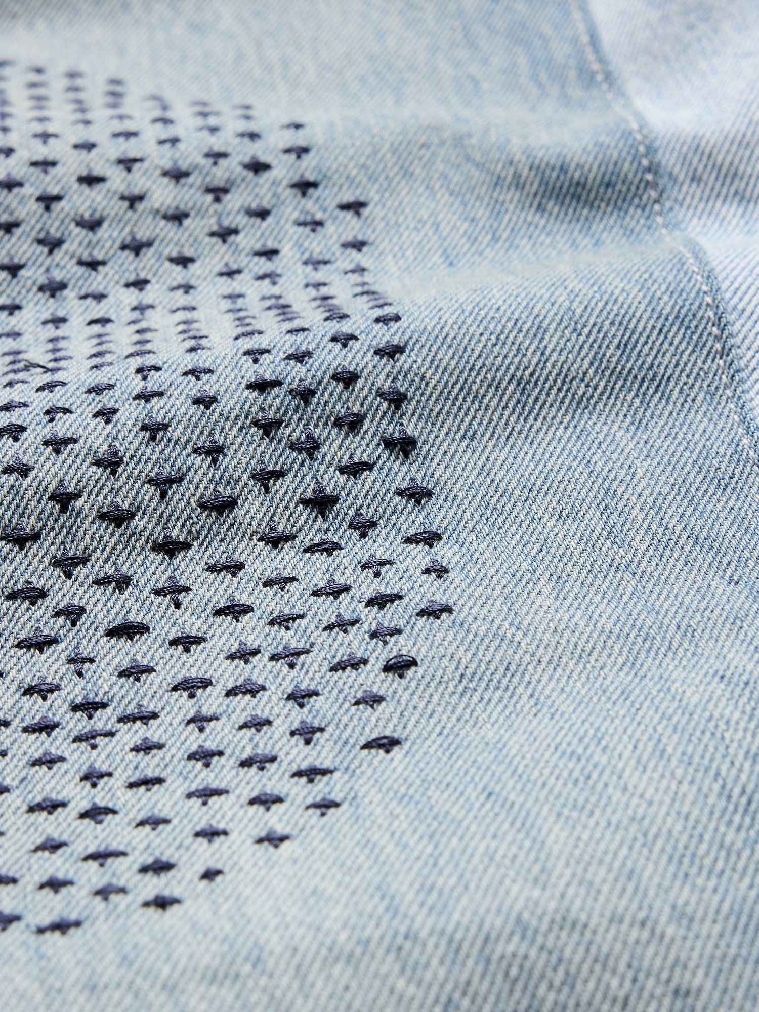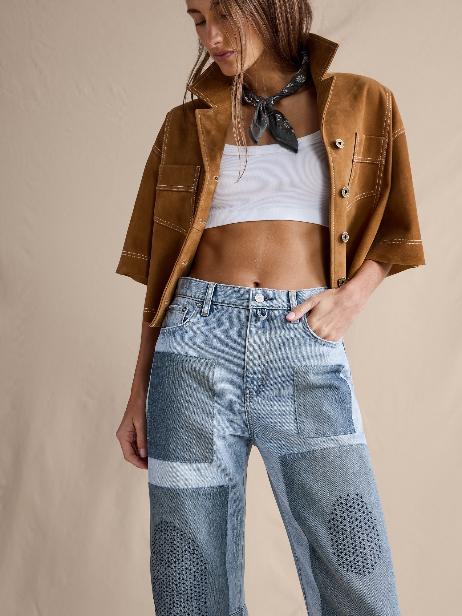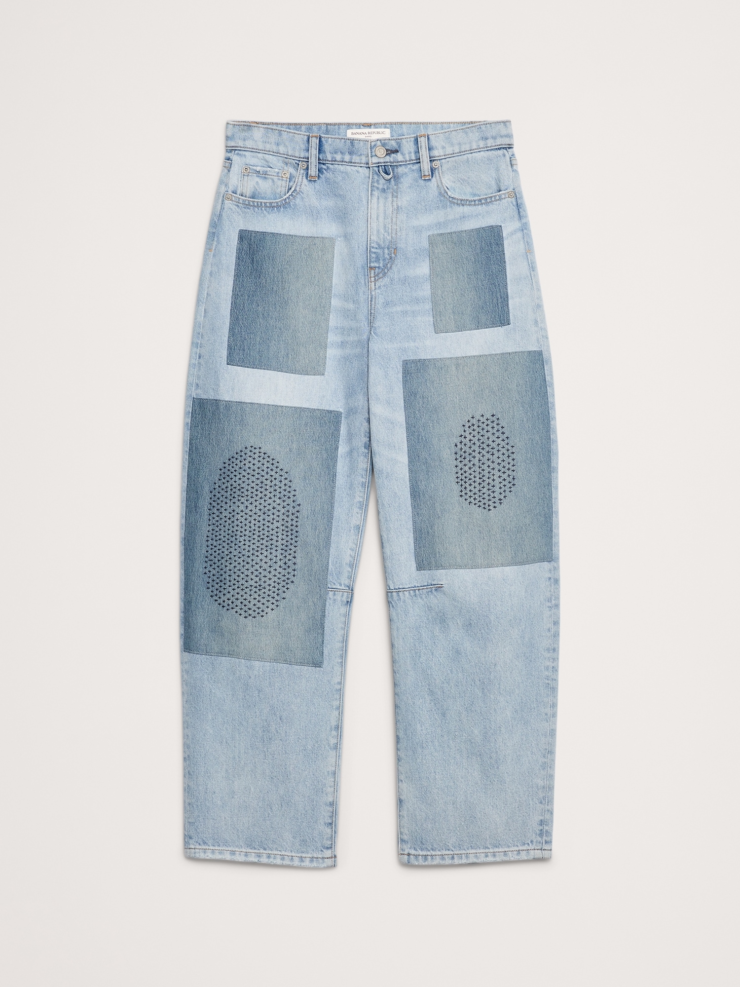 We wanted these barrel-leg jeans to capture the feeling of a well-loved pair, so we added patchwork detailing and sashiko-like stitching. Cut in 100% cotton denim so they mold to you with every wear.