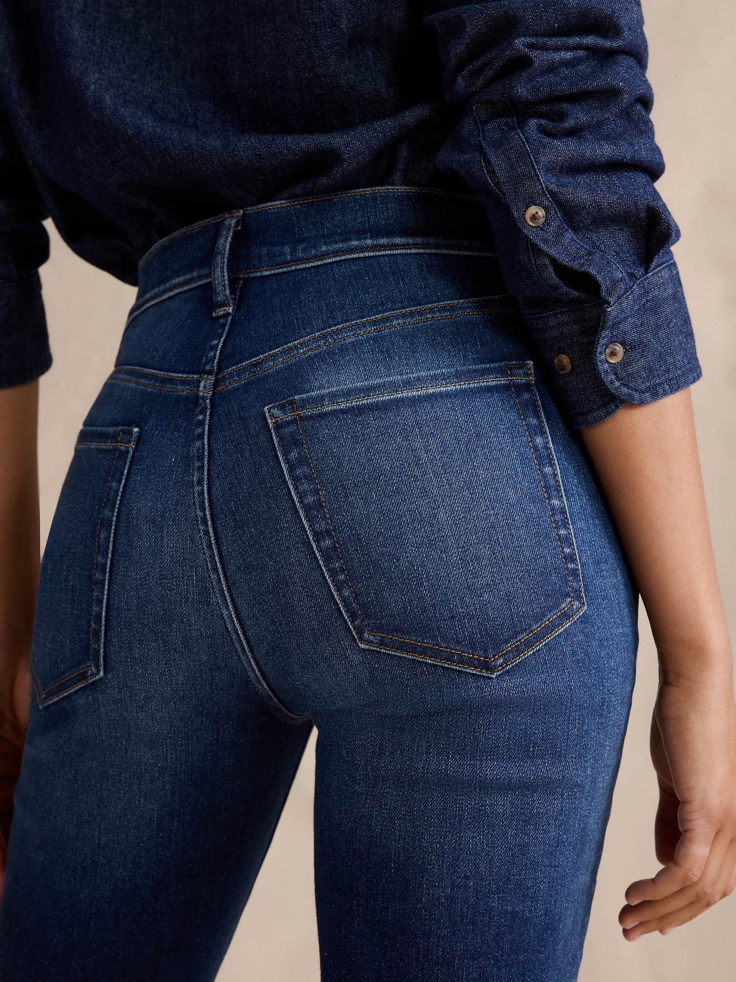 Did you get taller? Designed for a body-hugging fit, these mid-rise flare jeans are cut from a denim fabric we love for its superior stretch and soft feel against the skin.