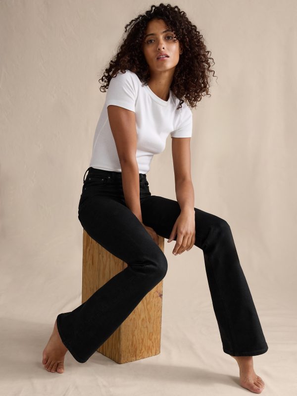Did you get taller? Designed for a body-hugging fit, these mid-rise flare jeans are cut from a denim fabric we love for its superior stretch and soft feel against the skin.
