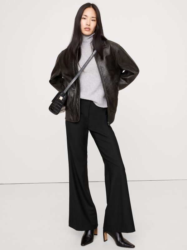 The pant we’ve been dreaming of. This one brings the 2000s vibes with a mid-rise flared silhouette and a barely-there waistband design. Cut in an wool-blend we love for its smooth look and stretch.