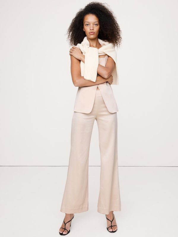 Things we love about these pants: the kick-flare silhouette, the satin fabric, and the hidden elastic at the back waist for a custom fit. Make it a set with the matching vest.