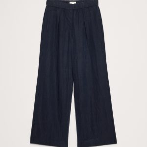 Mid rise (10\”). Straight through hip and thigh with a wide leg. Full length.
