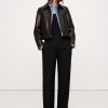 Zip fly with hook-and-bar closure. Belt loops.