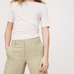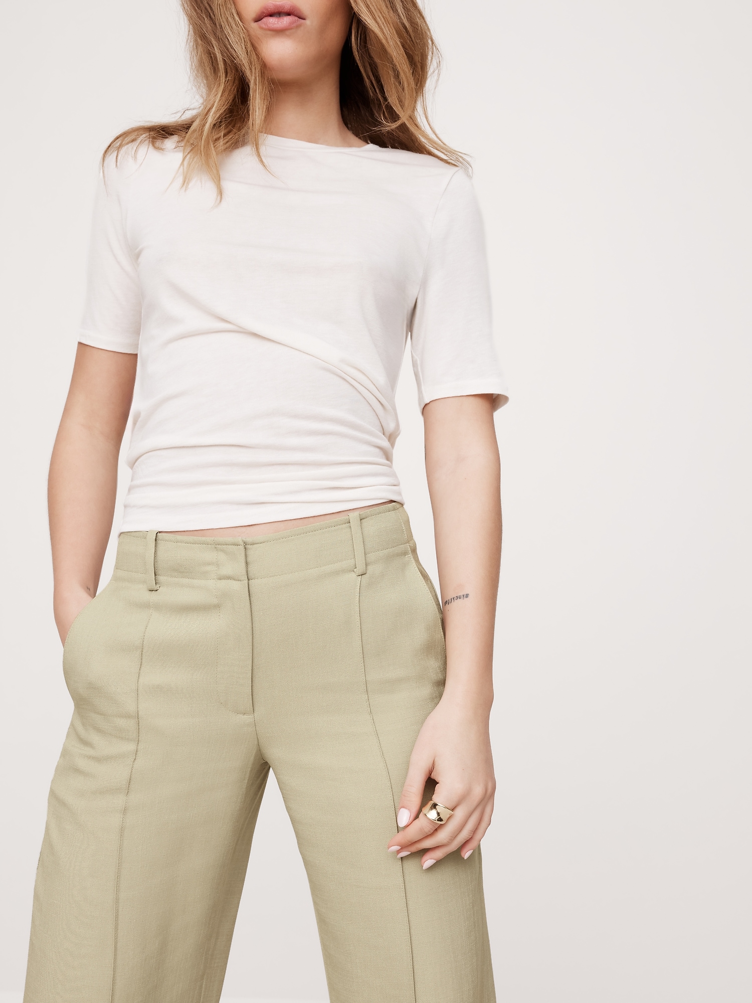 Mid-Rise Wide-Leg Drapey Twill Pant