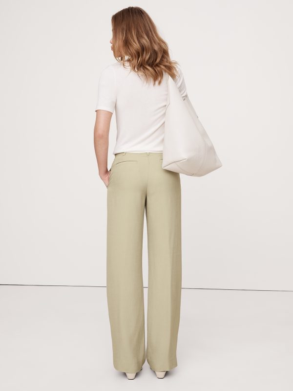 Mid-Rise Wide-Leg Drapey Twill Pant