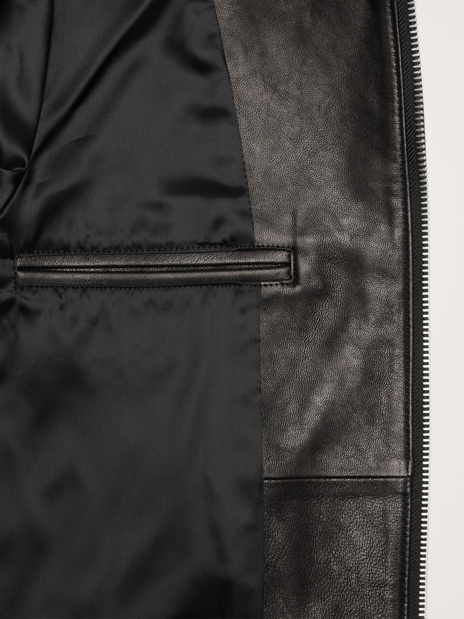 Based on an archival garage jacket from the 1990s, we pared down the details we love most in a leather jacket to keep the vibe streamlined: a pointed collar, zip front, and secure, zippered pockets. We updated the fit to feel ever-so-slightly shrunken so it feels fresh and to show off the beautiful and soft lambskin leather—a material we love because it only gets better with time.