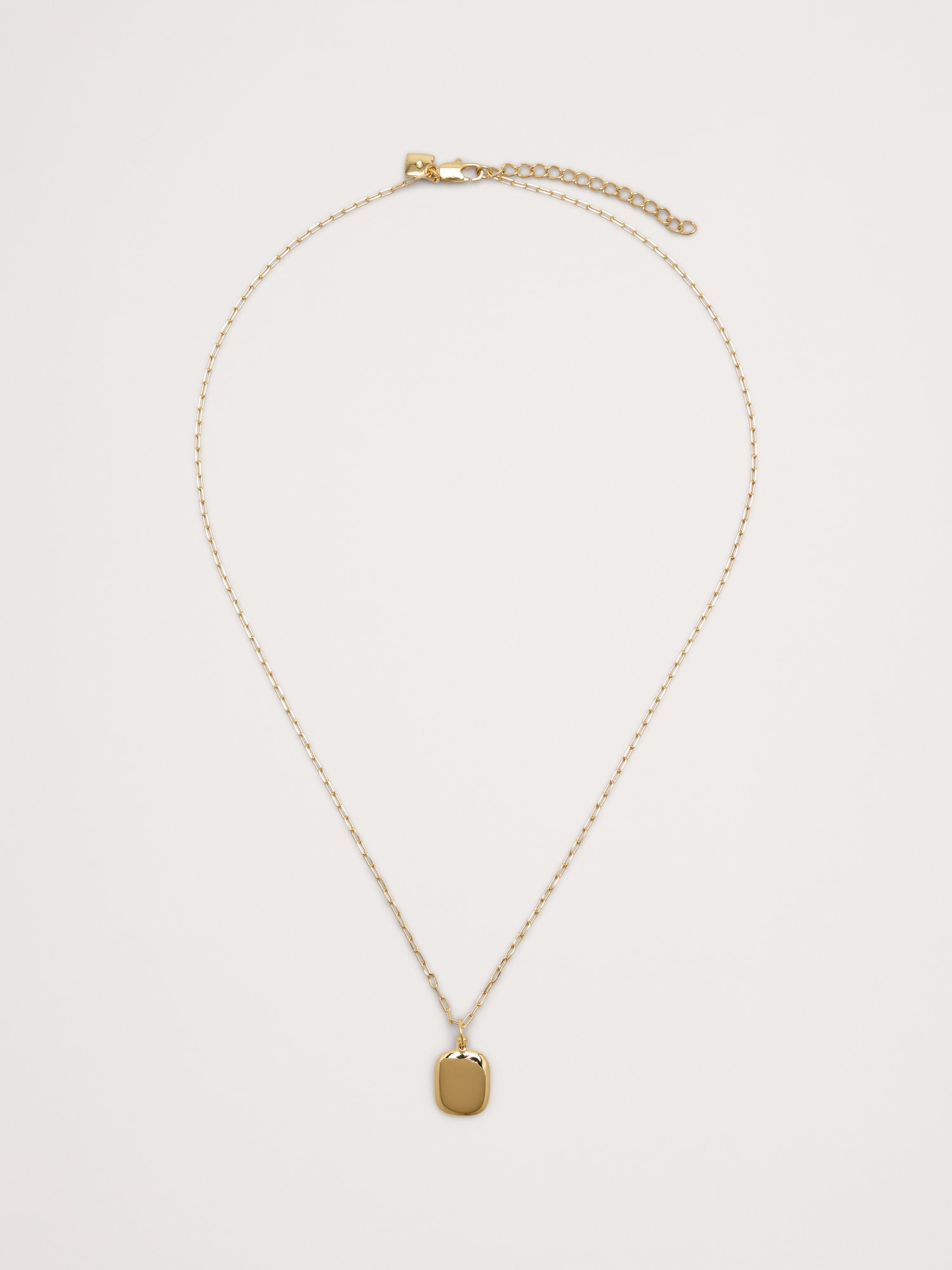 A classic pendant necklace on a link chain with a minimalist pendant, finished in 14k-gold or 999-silver plated brass.