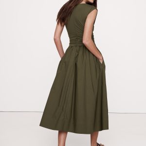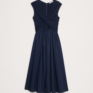 Soft, stretchy jersey twists to create a cutout effect at the waist of this mixed, media dress, finished with a 100% cotton poplin skirt. Did we mention it also has pockets?