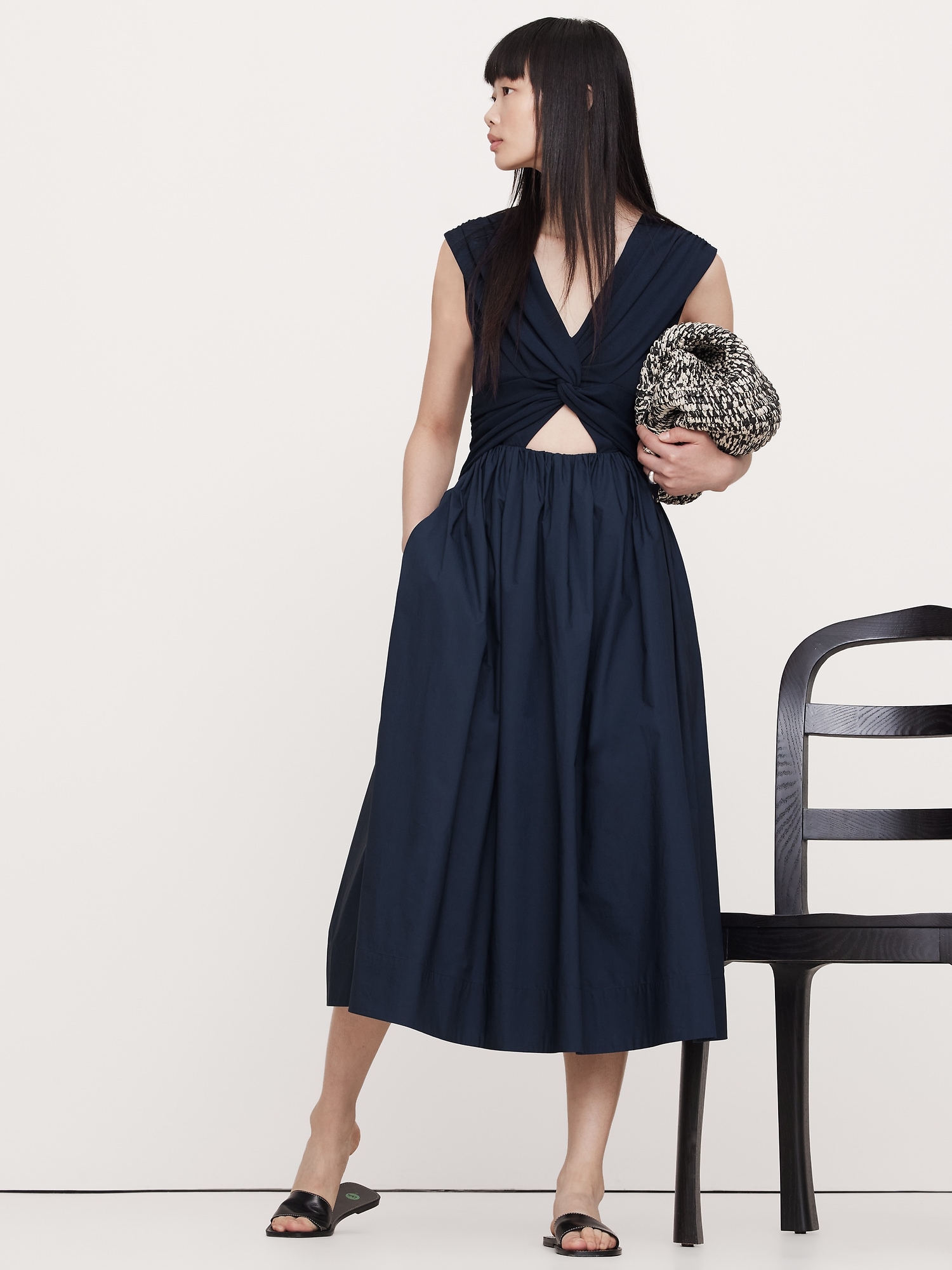 Mixed-Media Cut-Out Midi Dress