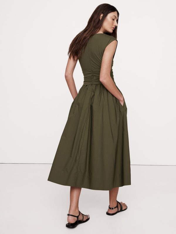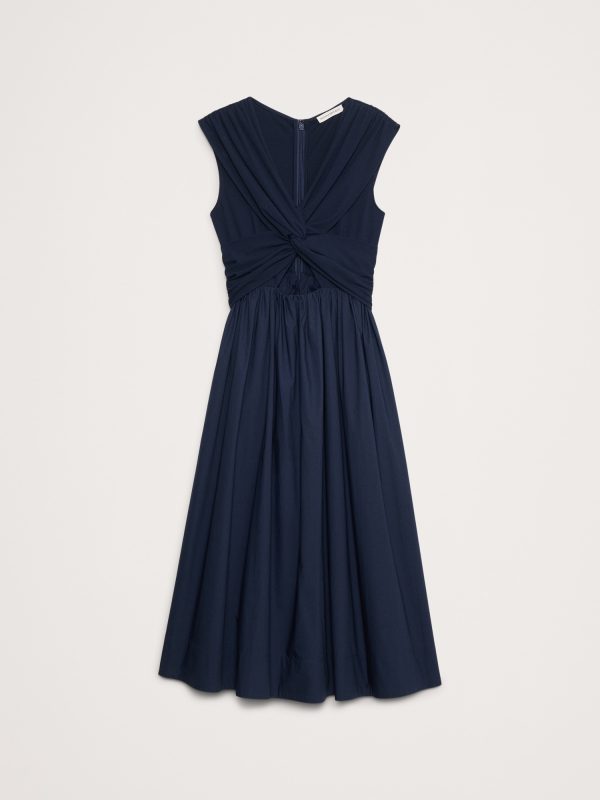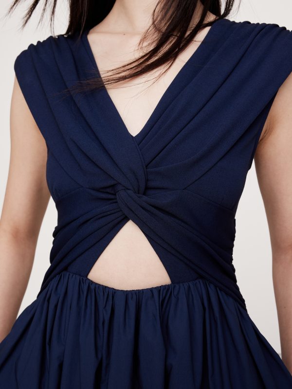 Soft, stretchy jersey twists to create a cutout effect at the waist of this mixed, media dress, finished with a 100% cotton poplin skirt. Did we mention it also has pockets?