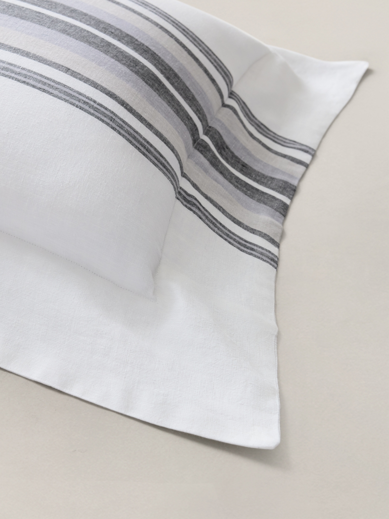 Loomed from premium linen, our shams offer a timeless design and refined hand. The textural material is expertly tailored and adorned with multicolored stripes against a white ground for a graphic feel. Pair with the coordinating duvet cover for a cohesive look.