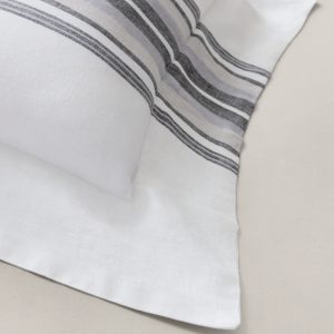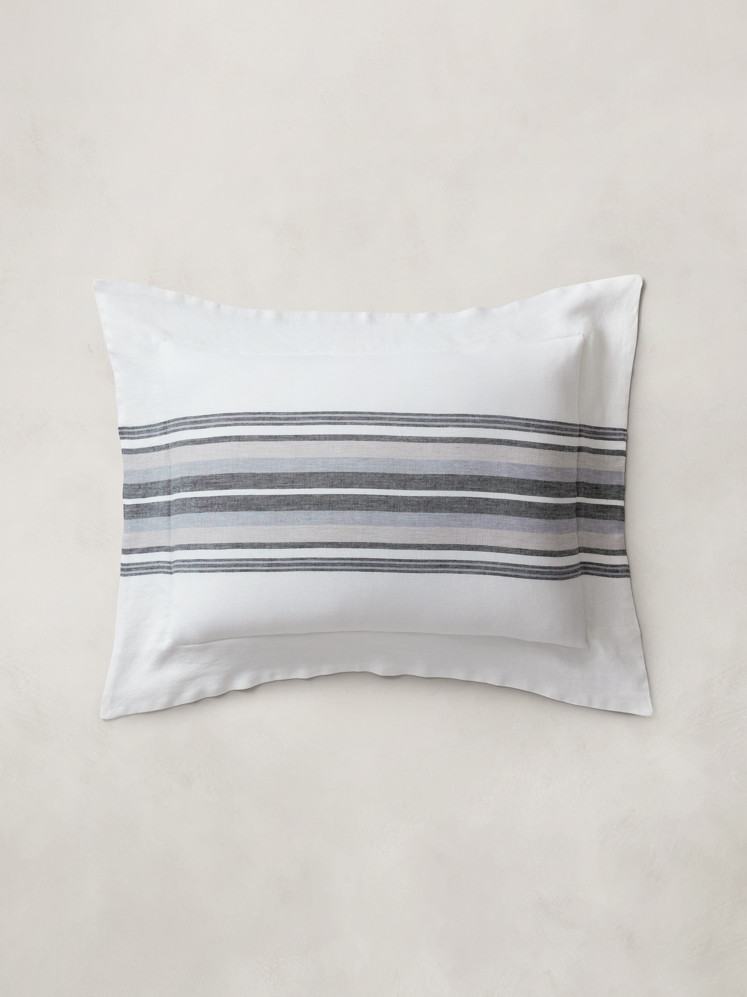 Loomed from premium linen, our shams offer a timeless design and refined hand. The textural material is expertly tailored and adorned with multicolored stripes against a white ground for a graphic feel. Pair with the coordinating duvet cover for a cohesive look