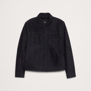 A luxurious twist on a utilitarian staple, this leather jacket borrows its silhouette from classic trucker jean jackets. We kept the pocketing, snap buttons, and top-stitch detailing of the original, and rendered it in premium nubuck leather, made in one of the world’s most renowned ateliers. Plus, since it’s nubuck, it will only get better with time, developing a rich and unique patina.